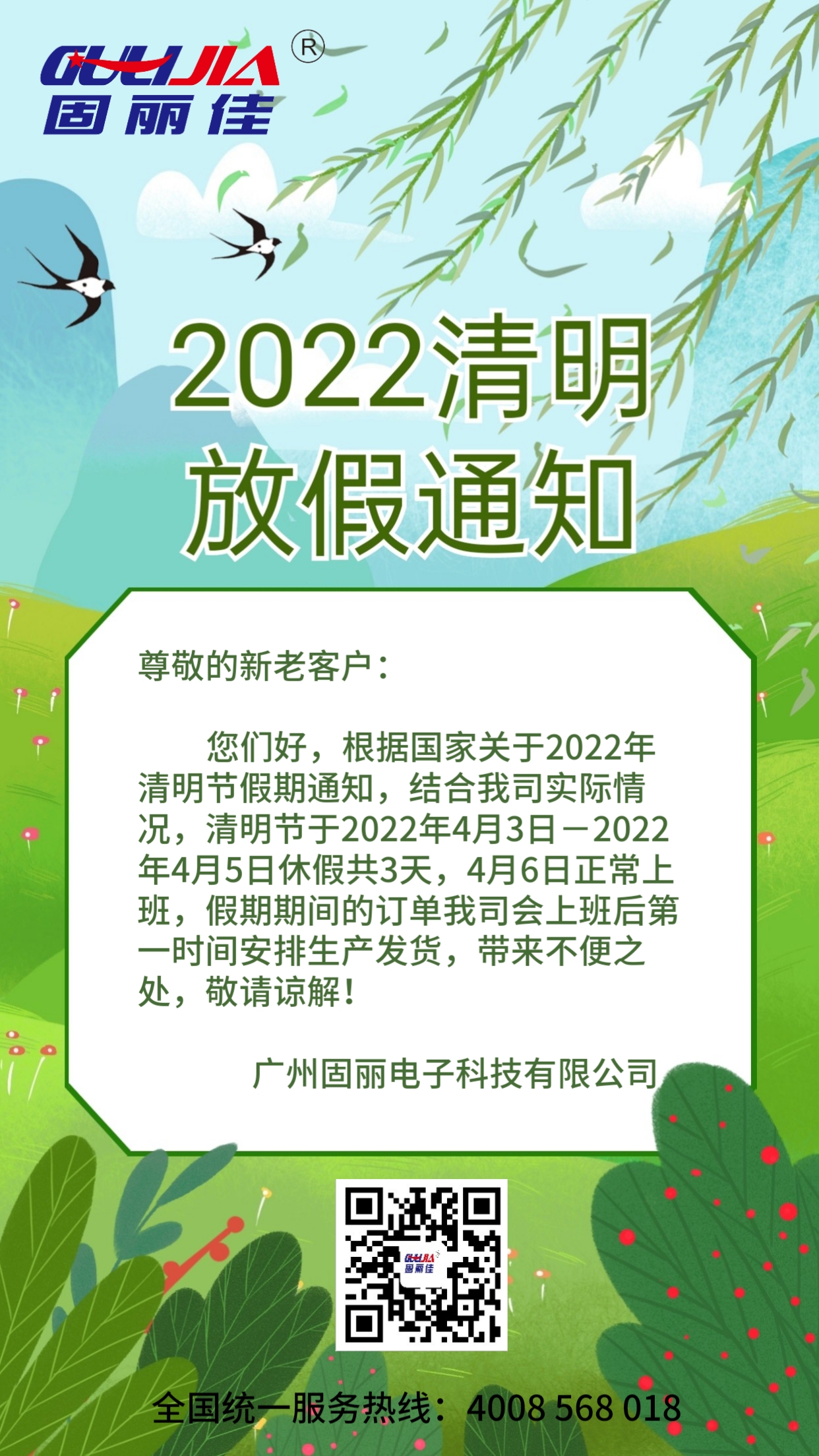 廣州固麗電子科技有限公司溫馨提示:假期注意安全、減少外出,出行佩戴口罩,做好防護(hù),避免去人多的地方!