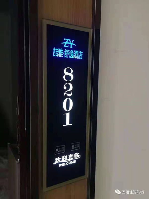 廣州喆雅.舒逸酒店此次與我們固麗科技合作選擇安裝了固麗佳GLJ-9899FH的新款智能酒店門鎖以及配套的電子門顯。此款酒店鎖是固麗佳專利產(chǎn)品,外觀設(shè)計新穎,采用堅實防暴的鋅合金材質(zhì),同時刷卡感應(yīng)區(qū)顯示面板可以個性化定制LED顯示酒店名稱和品牌LOGO,彰顯了酒店特色!其豪華的氣質(zhì)更是奢華與尊貴的象征,是各大星級酒店賓館首選,固麗佳智能酒店鎖卓越的質(zhì)量品質(zhì)與完善的售后服務(wù)更是受到各大酒店青睞的原因之一!
