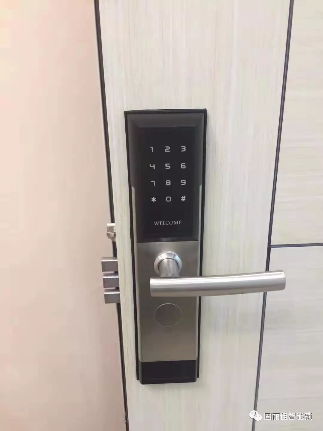 天河梵洛居公寓客房門鎖選擇安裝了固麗佳GLJ-9814不銹鋼LoRa無線聯(lián)網(wǎng)公寓防盜門鎖調(diào)試完成,此款標(biāo)配6068電子鎖體防盜門不用改孔。固麗佳LORA無線聯(lián)網(wǎng)密碼開鎖信息實(shí)時(shí)聯(lián)網(wǎng)監(jiān)控、可手機(jī)開鎖,密碼開鎖,二維碼開鎖,不需布線可實(shí)現(xiàn)遠(yuǎn)程開鎖,斷鎖,斷電,防飛房,防欠租,可電腦端手機(jī)端同步在線,隨時(shí)隨地管理!